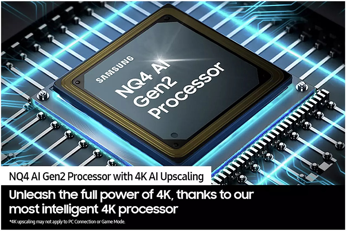 Samsung NQ4 AI Gen2 Processor uses 20 AI neural networks to upscale your favourite content to 4K Ultra HD. Whether you are watching YouTube videos or streaming the latest boxset, your Samsung TV will work in the background to upgrade your picture and sound quality.